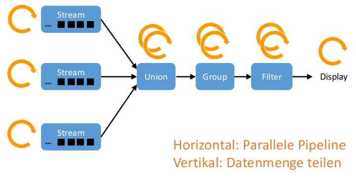 - Im Gegensatz zu "normalem" (P)LINQ (Pull) sind die Datenquellen aktiv und "Pushen" die Daten durch die Pipeline
