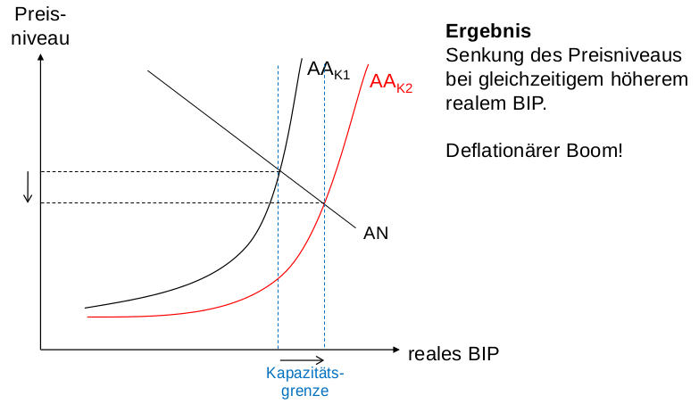 - In einer Boom-Phase ist die gleiche Erhöhung des Angebots schädlicher, weil das BIP weniger steigt als das Preisniveau